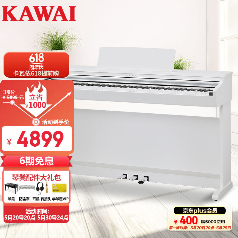 卡瓦依(KAWAI)电钢琴KDP120GW 88键重锤 电子数码钢琴成人儿童初学专业家用价格:5899.00元!