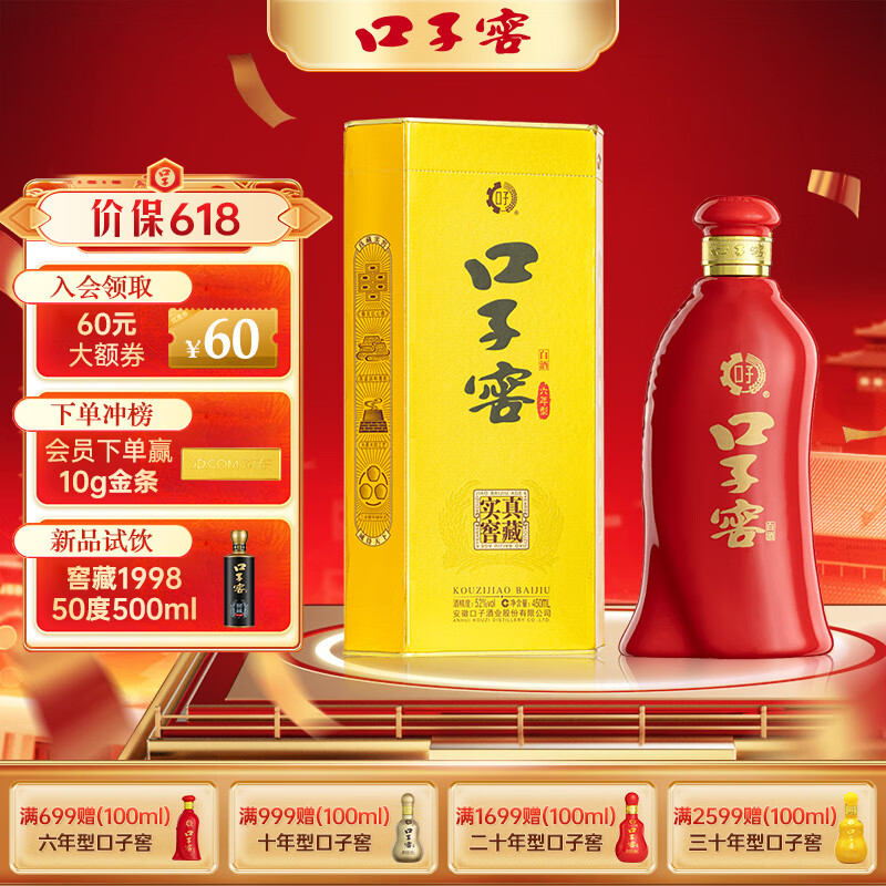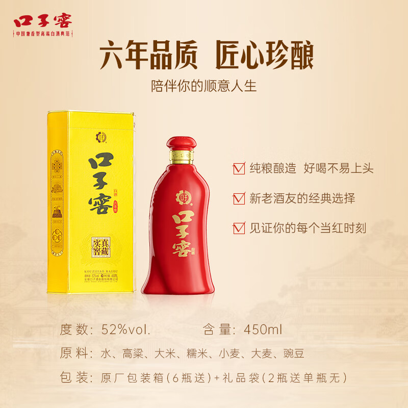 口子窖 六年型 兼香型白酒 52度 450ml 口子酒 纯粮酿造价格:172.00元!