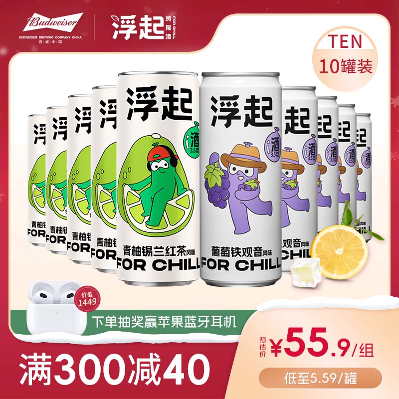 浮起百威鸡尾酒预调酒洋酒果酒气泡酒青柚葡萄铁观音混合330ml*10罐价格:80.00元!