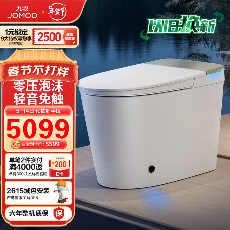 九牧(JOMOO)无水压限制智能马桶魔力泡低音冲自动翻盖坐便器ZS770P 400坑距价格:6099.00元!