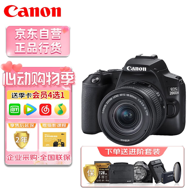 佳能(Canon)EOS 200D II 18-55mm STM套机【黑色】扫街拍摄套装价格:6699.00元!