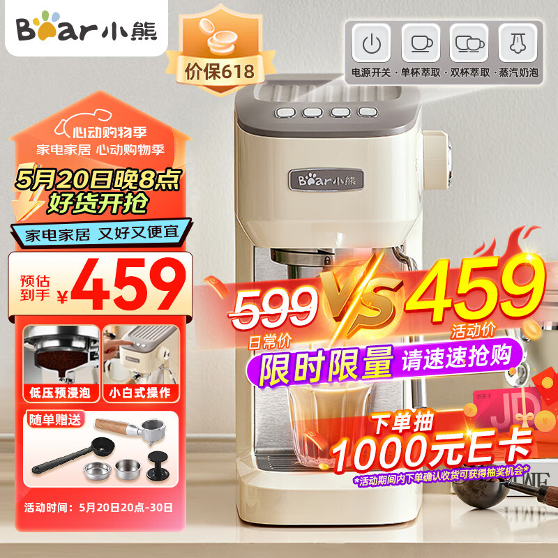 小熊(Bear)咖啡机意式家用小型15Bar泵压式 美式全半自动咖啡机办公室商用奶泡一体机 送礼推荐 KFJ-N12V1价格:599.00元!