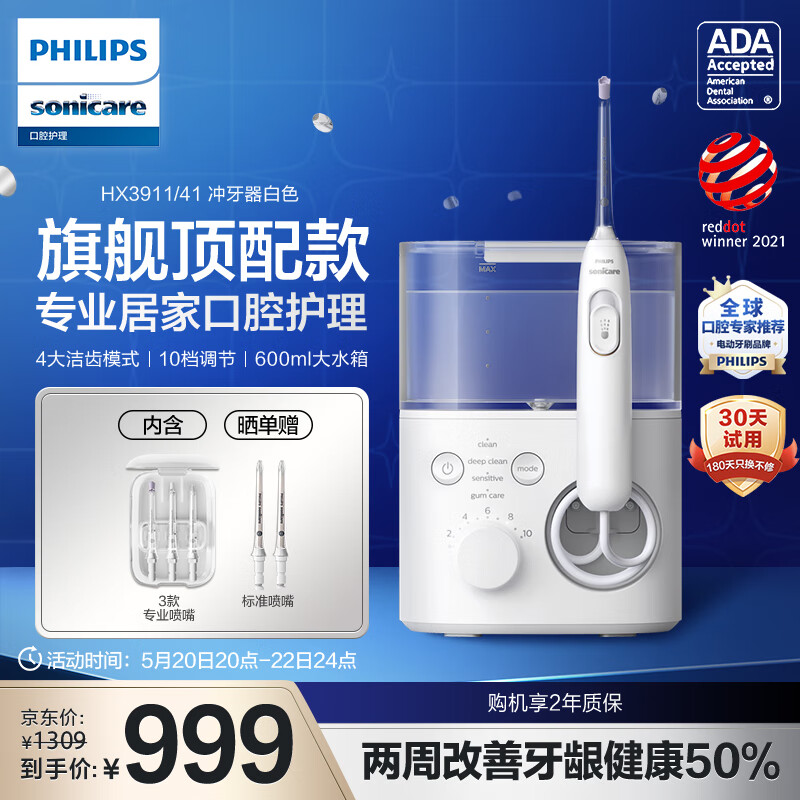 飞利浦(PHILIPS)家用台式冲牙器洗牙器台式家用四向水流科技4种洁齿模式 礼物水魔方白色HX3911/41价格:999.00元!