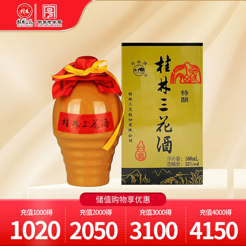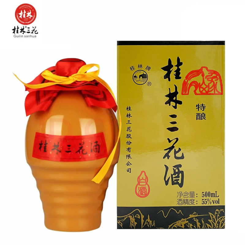 桂林三花酒 陶瓶特酿 米香型白酒 55度 500ml 单瓶装 送礼白酒价格:90.00元!