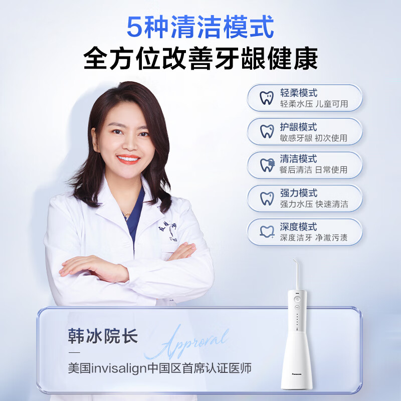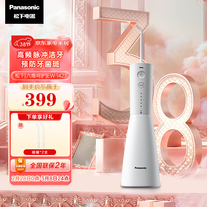 松下(Panasonic)冲牙器洗牙器水牙线 立式高频脉冲水流洗牙器 电动冲牙器 焕光瓶EW-1423-W405 简约白价格:439.00元!