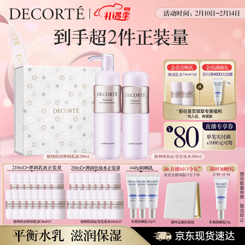 黛珂植物欣韵弹润水乳护肤品套装200ml*2 温和保湿 化妆品情人节礼物价格:680.00元!