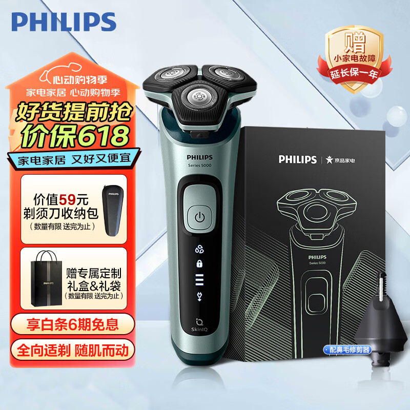飞利浦(PHILIPS)电动剃须刀蜂巢5系礼盒 SkinIQ高端系列肌能感应刮胡刀 生日礼物 送男友 送老公价格:526.00元!