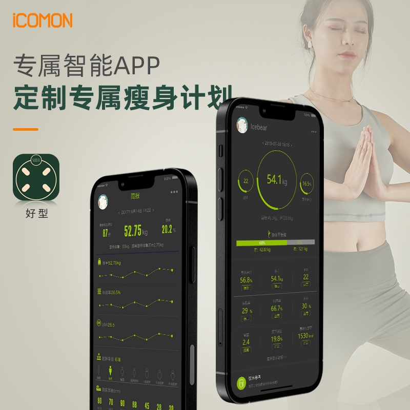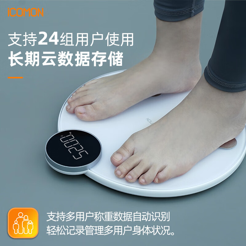 沃莱(ICOMON)智能体脂秤家用电子体重秤人体24项核心数据健康监测称 APP自测数据体脂仪充电款价格:129.00元!