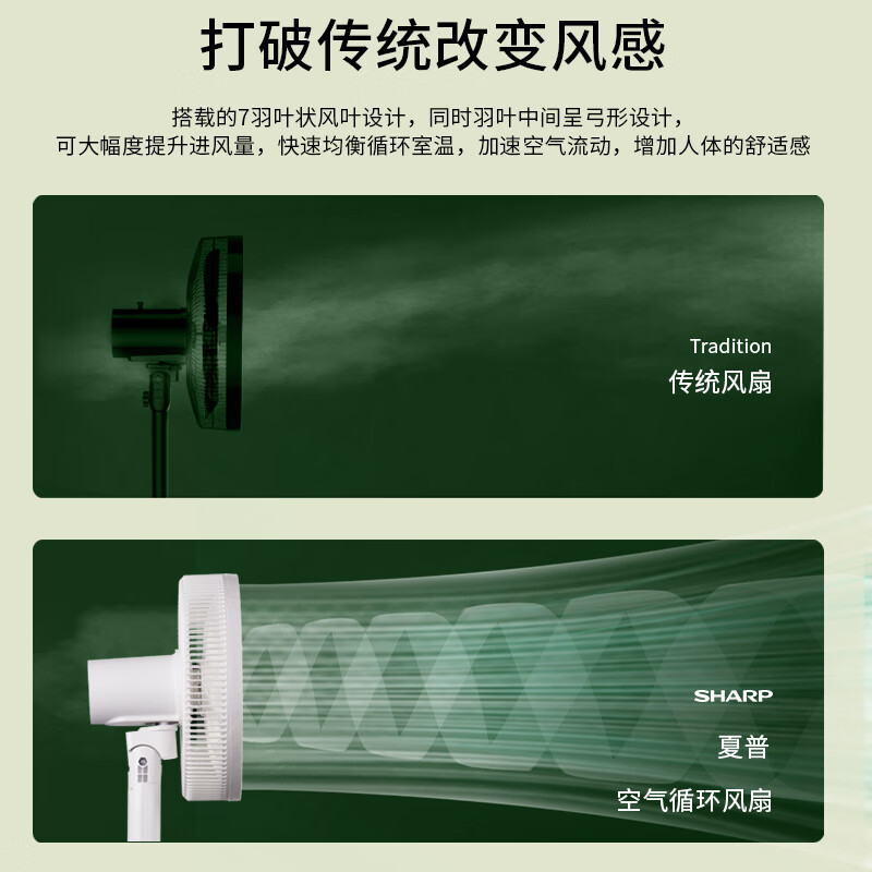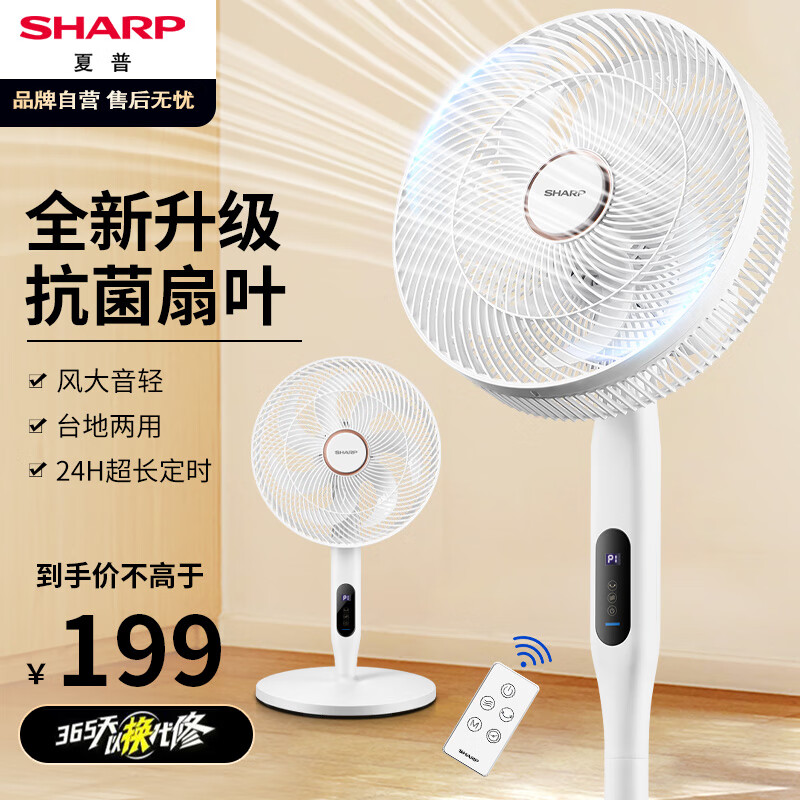 夏普(Sharp)【空气净化扇】电风扇家用遥控落地扇轻音低噪大风量空气循环扇七扇叶节能风扇 PJ-FD110A-C价格:299.00元!