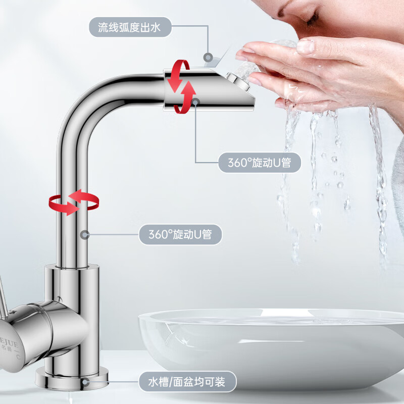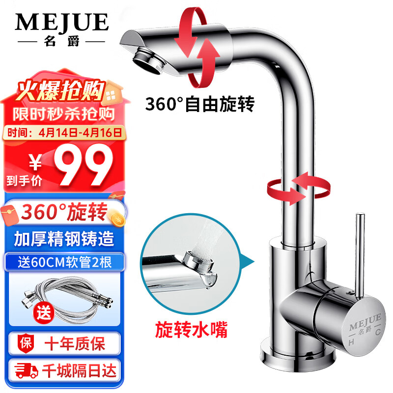 名爵(MEJUE)面盆水龙头冷热双控360°双旋转卫生间洗脸洗手台盆龙头Z-1201价格:99.00元!