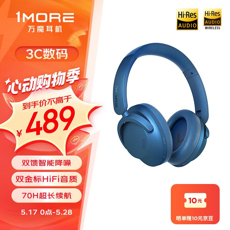 万魔(1MORE)SonoFlow 蓝牙耳机头戴式 智能主动降噪 真无线游戏音乐运动耳机 双金标认证 HC905蓝 周杰伦代言价格:489.00元!