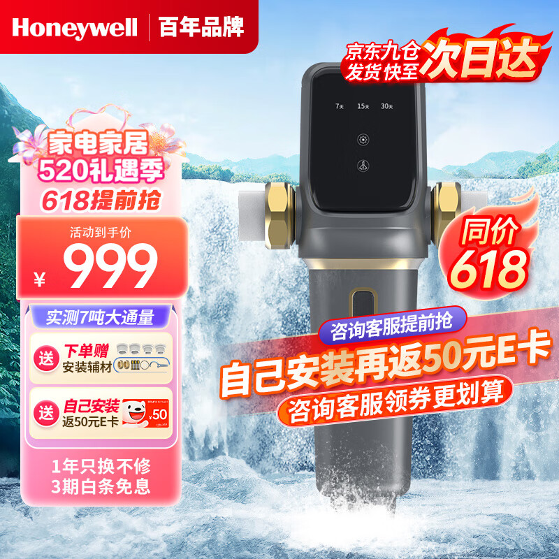 霍尼韦尔前置过滤器净水器全屋自来水家用大流量中央冲洗净水机电子触屏全自动排污免拆洗PFF90T12-EC价格:999.00元!