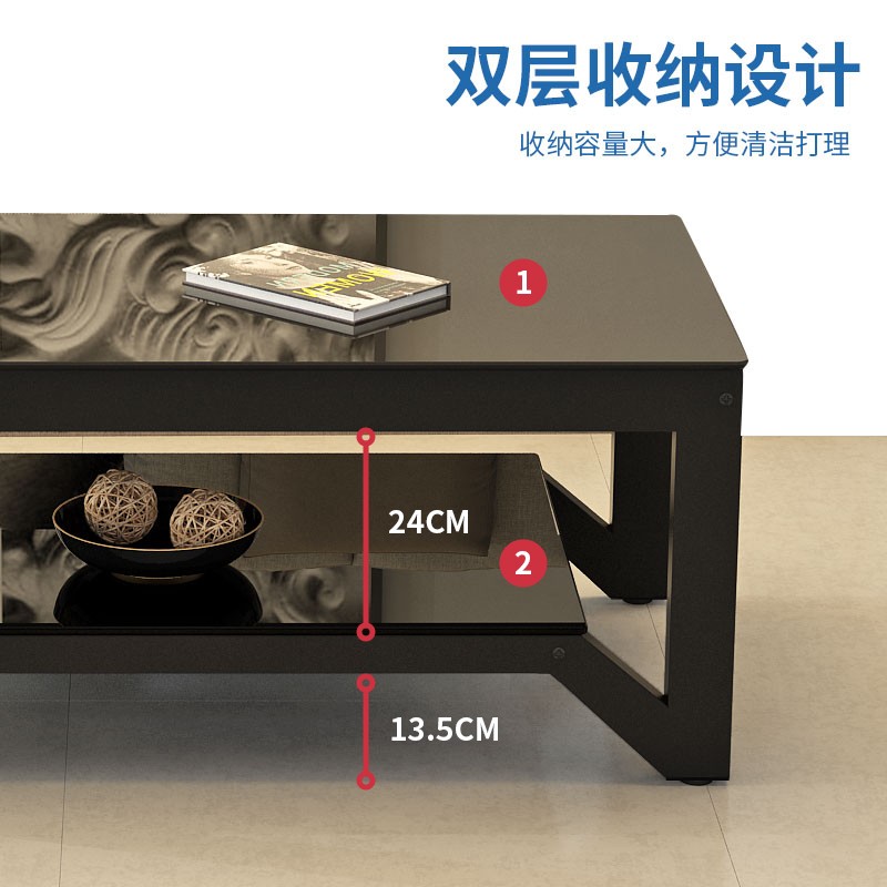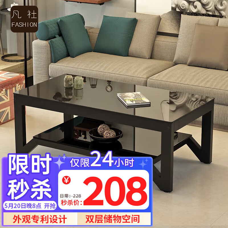 凡社茶几客厅 简约小户型双层钢化玻璃加粗桌脚茶几桌子价格:208.00元!