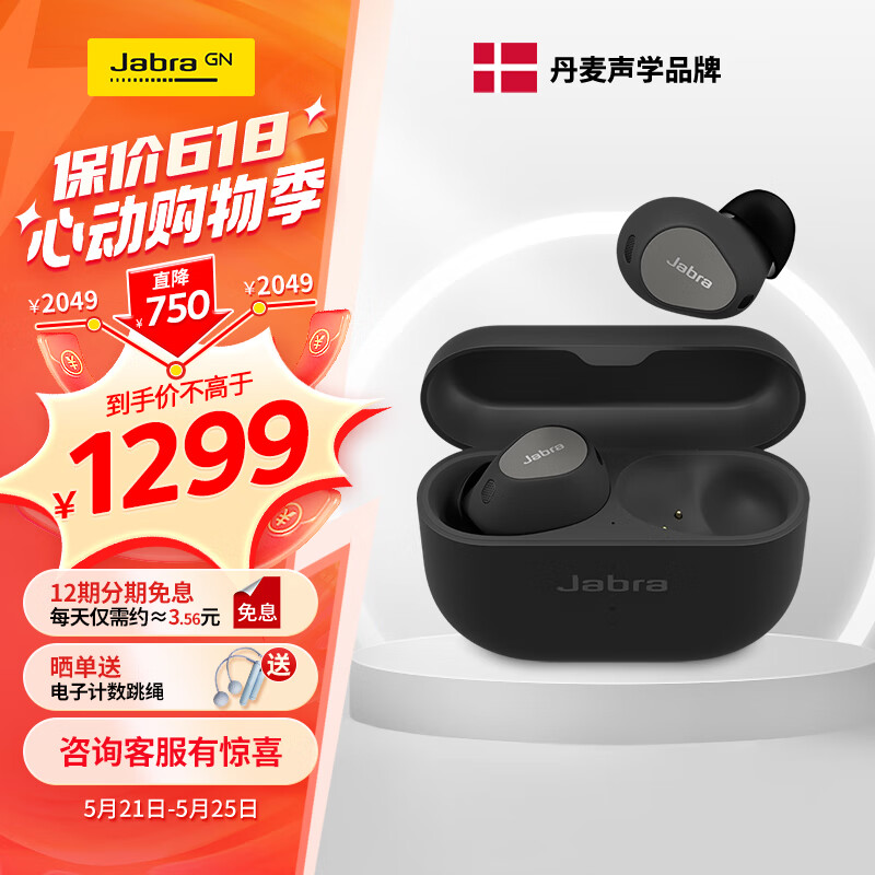 捷波朗(Jabra)Elite10 新一代E10主动降噪真无线蓝牙半开放入耳式耳机(85t升级版E10)自适应双馈主动降噪 钛黑色价格:1299.00元!