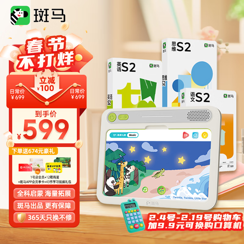 斑马思维机G2 语数英S2阶段 猿辅导学习机早教机 儿童玩具3-8岁新年礼物价格:689.00元!