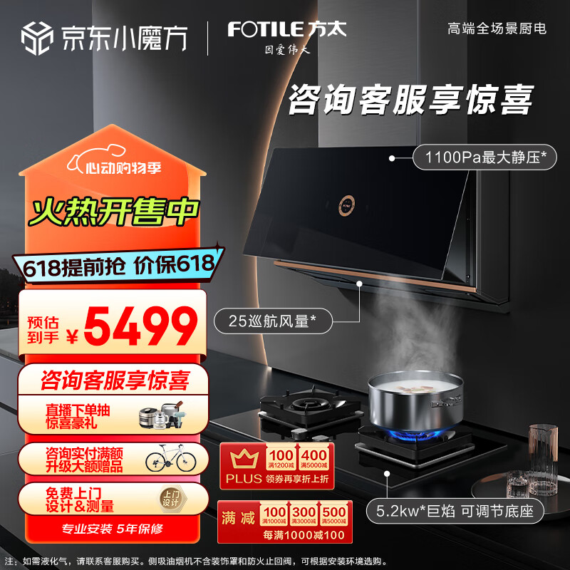 方太抽吸油烟机灶具套装 侧吸式变频烟灶 25大风量 超薄近吸 5.2kW燃气猛火双灶 P1A.i+02-TH27B价格:6099.00元!