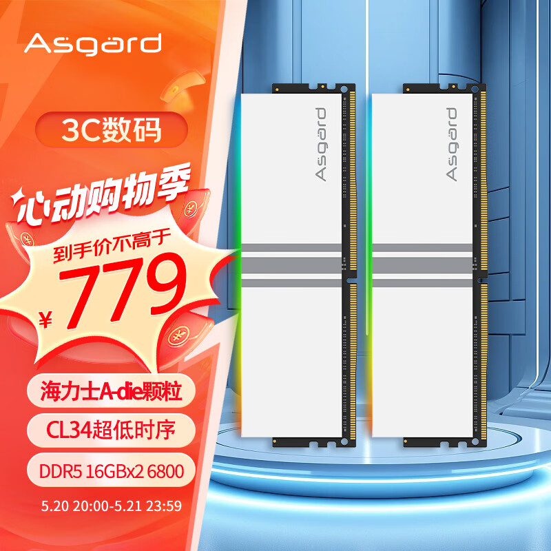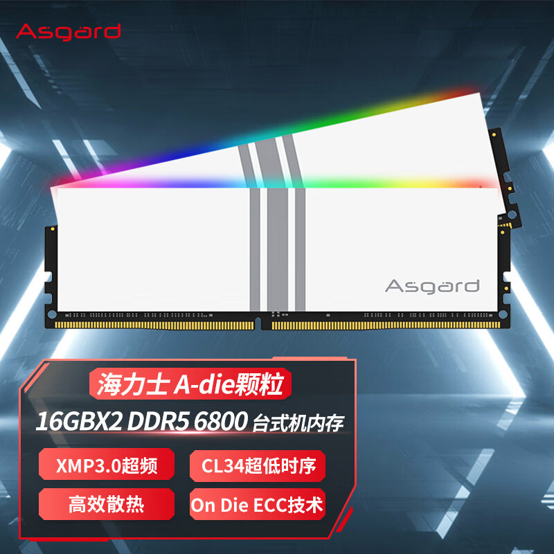阿斯加特(Asgard)32GB(16Gx2)套 DDR5 6800 台式机内存条 RGB灯条-女武神·瓦尔基里【C34】价格:779.00元!