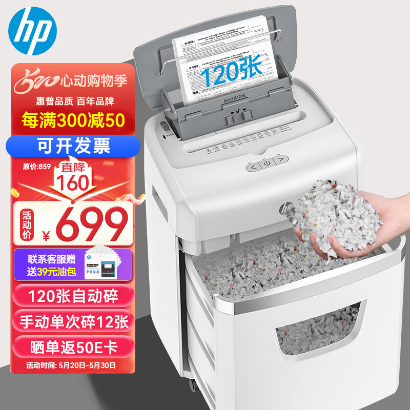 HP惠普(HP)全自动120张碎纸机高保密办公大型商用粉碎机(自动碎持续30分钟)手动单次12张 W23120CC价格:859.00元!