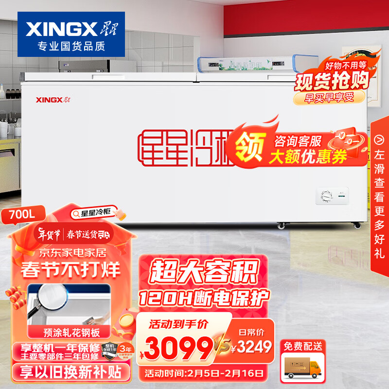 星星(XINGX) 700升 商用大容积卧式单温冰柜 冷藏冷冻转换冷柜 单箱变温冰箱 BD/BC-700R价格:3099.00元!