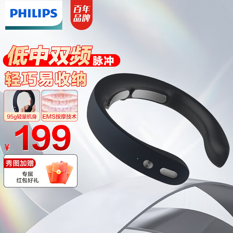 飞利浦(PHILIPS)颈椎按摩器颈部按摩仪肩颈按摩器肩部脖子颈椎护颈仪脉冲送男女友生日礼物送父母 【95g轻量机身】双频脉冲-深蓝价格:229.00元!