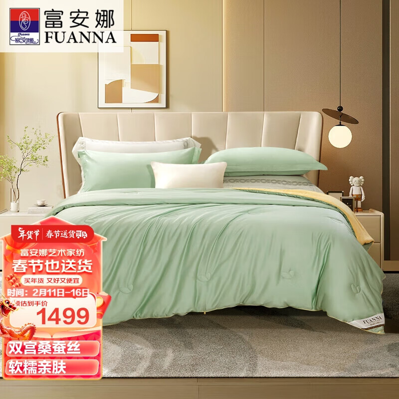 富安娜 沐晴雪 100%桑蚕丝双宫茧 四季被 6斤 230*229cm 绿+黄色价格:2199.00元!