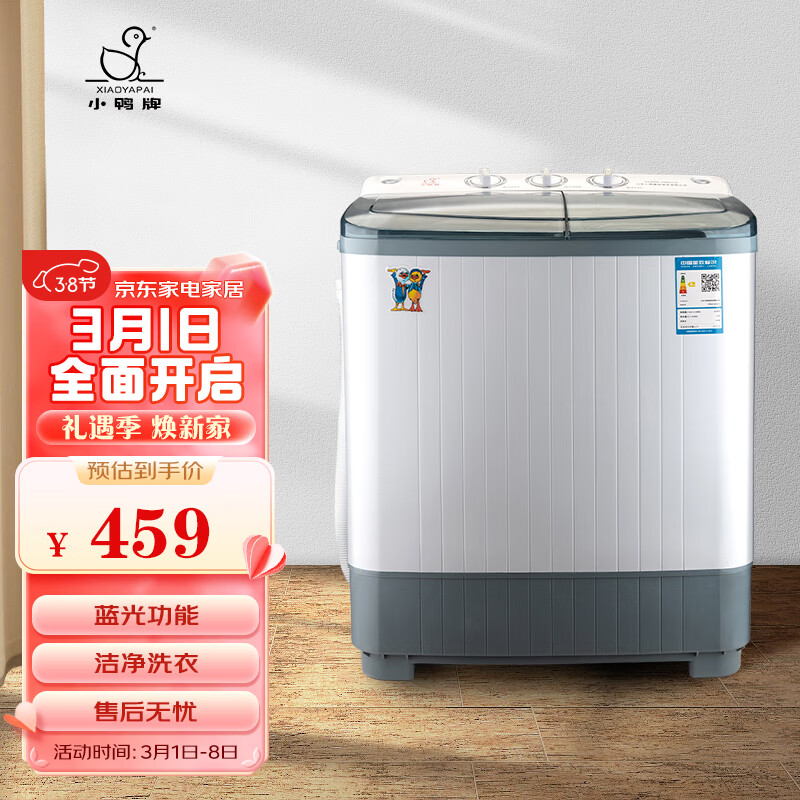 小鸭6公斤半自动迷你洗衣机 婴儿童双缸脱水 洗脱两用 XPB60-2860BS价格:459.00元!
