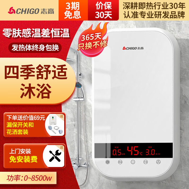 志高(CHIGO)即热式电热水器8500W变频恒温速热小型小厨宝省电热水器家用洗澡免储水多功率可调防漏电ZG-KB821价格:699.00元!