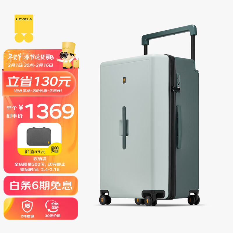 地平线8号(LEVEL8)行李箱 男女28英寸大容量宽拉杆万向轮大旅行家PC拉杆箱 抹茶撞色价格:1499.00元!