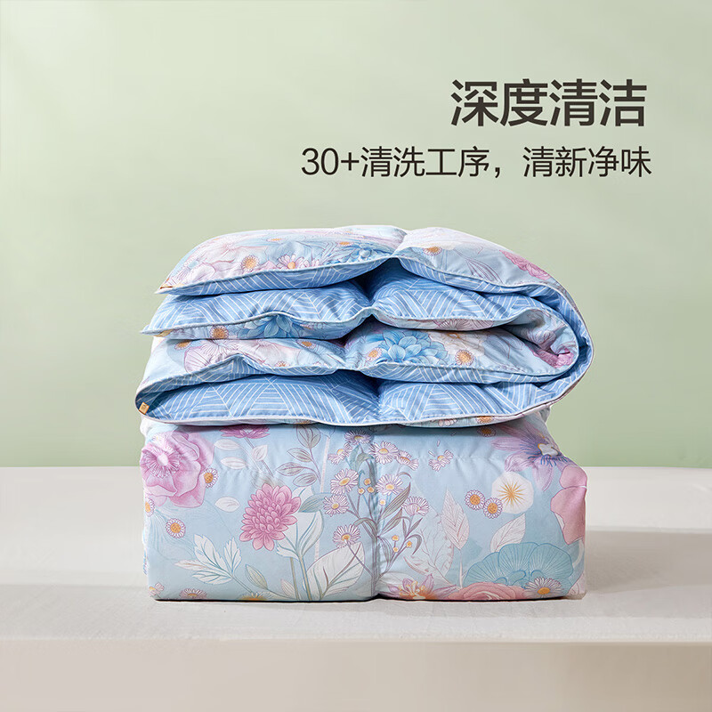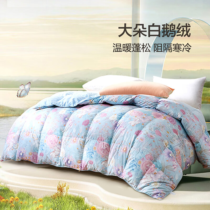 富安娜 仙境花 95%白鹅绒羽绒被 冬被 1100g填充 230*229cm 蓝色价格:3399.00元!