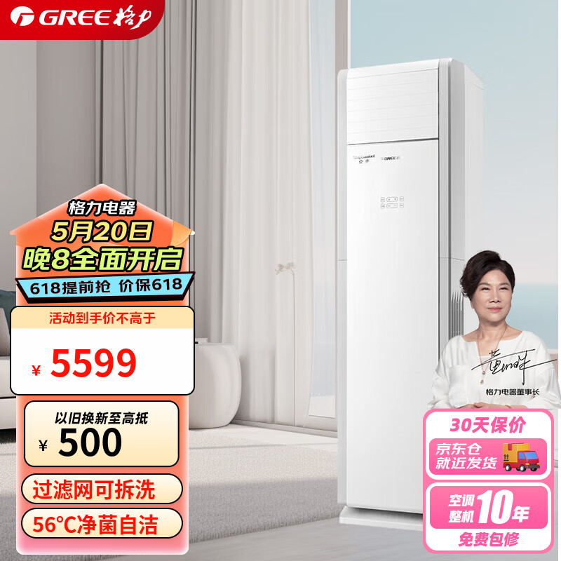 格力(GREE)2匹 京爽 新三级能效 变频冷暖 高温自清洁 立柜式空调柜机 KFR-50LW/(50533)FNhAs-B3价格:5599.00元!