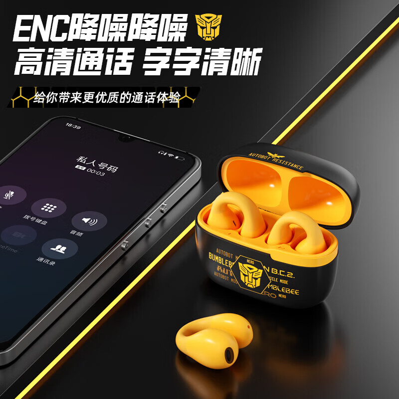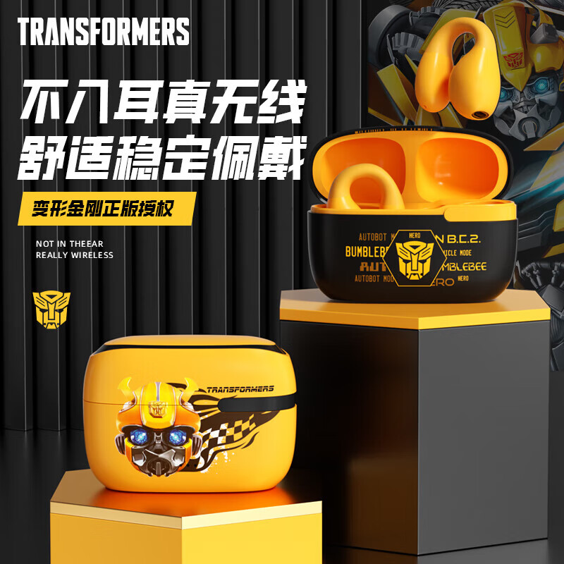 变形金刚(Transformers)蓝牙耳机骨传导概念开放式运动跑步骑行降噪耳夹式耳机 适用苹果华为【TFT05原始兽-灰】价格:69.00元!