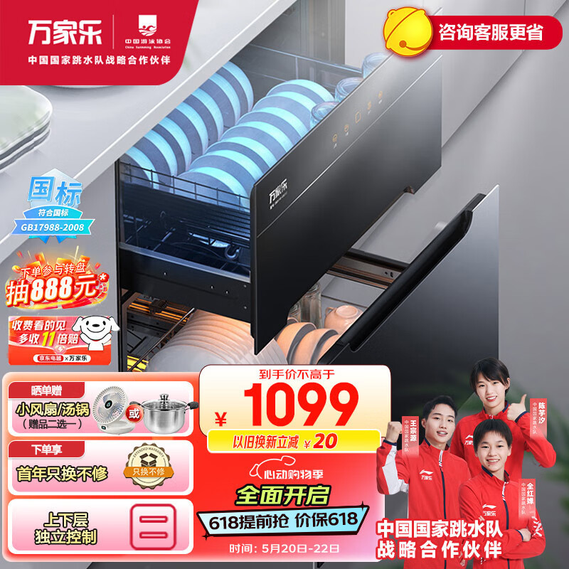 万家乐消毒柜 嵌入式厨房消毒碗柜110L家用 高低温二 紫外线臭氧杀菌 上下层独立控制ZQD110-DQ052价格:1099.00元!