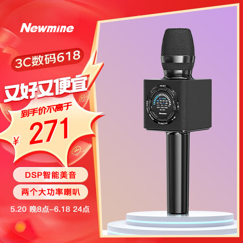 纽曼(Newmine)MC66 无线话筒音响一体麦克风机收音麦K歌娱乐直播手机蓝牙车载动圈麦克风双喇叭 黑色价格:319.00元!