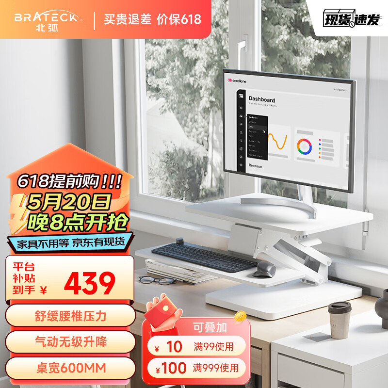 Brateck升降电脑桌 北弧站立办公升降台 站立式电脑升降支架 D340白价格:499.00元!