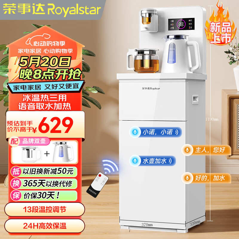 荣事达(Royalstar)智能语音茶吧机高端多功能触控大屏调温茶水分离下置式立式饮水机冷热款CY827D价格:669.00元!