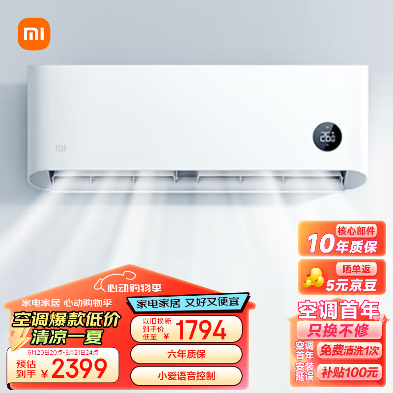 小米1.5匹 新一级能效 变频冷暖 轻柔风感 智能自清洁 壁挂式卧室空调挂机 KFR-35GW/R1X1价格:2399.00元!