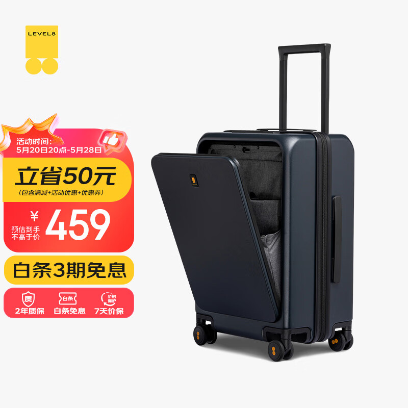 地平线8号(LEVEL8)行李箱旅行拉杆箱20英寸男女商务登机箱前开盖万向轮密码箱蓝色价格:509.00元!