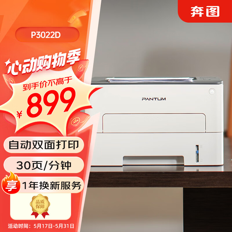 奔图(PANTUM)P3022D黑白激光打印机 自动双面小型办公打印机商用 仅支持电脑打印价格:899.00元!