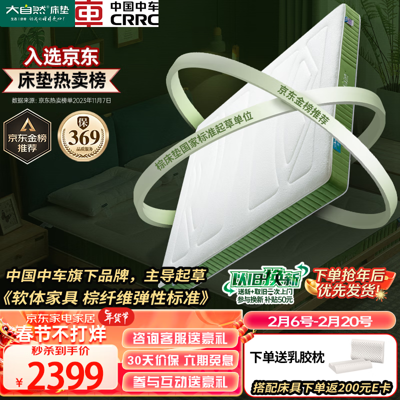 大自然山棕床垫椰棕床垫 可定制榻榻米偏硬棕垫 森梦 1.5米*2米*7厘米价格:2789.00元!