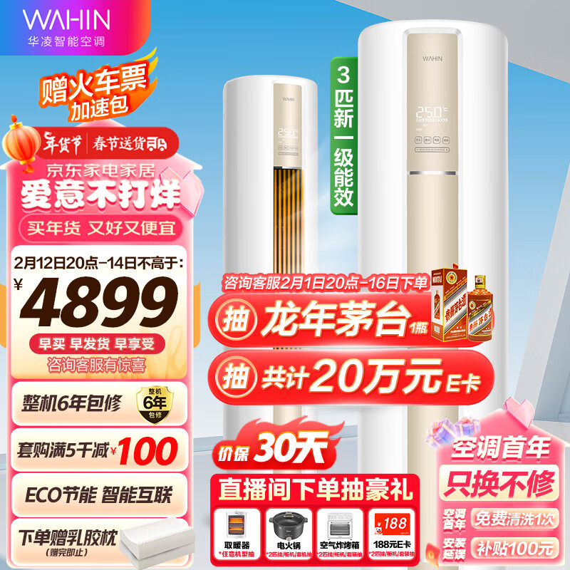 华凌空调 新一级 空调立式 手机智能遥控 急速冷暖 3匹 客厅空调柜机 京东小家KFR-72LW/N8HA1以旧换新价格:4147.00元!