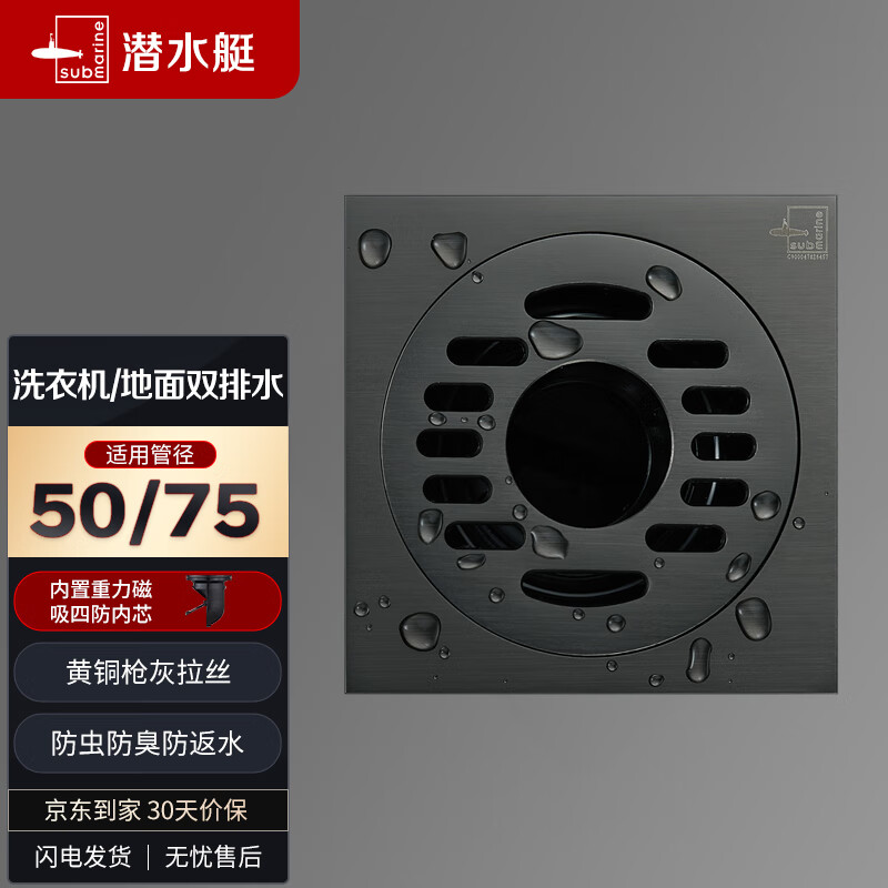 潜水艇(Submarine)MTF50-10X黄铜镀镍枪灰色地漏两用洗衣机防臭地漏50管径价格:97.20元!