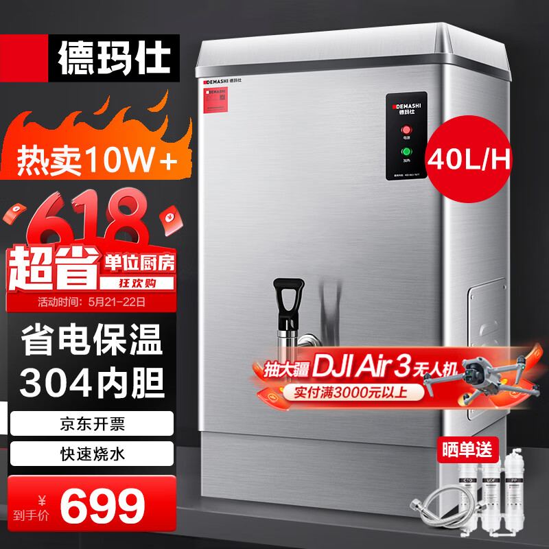 德玛仕 DEMASHI 电热开水器商用开水机 全自动进水 304不锈钢 保温烧水器商用 KS-30F(发泡款)价格:699.00元!