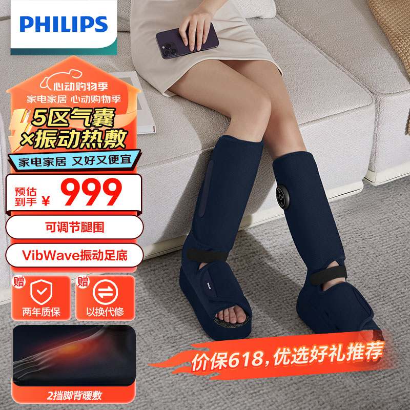 飞利浦(PHILIPS)腿部按摩器大腿小腿足底热敷震动多气囊按摩加热腿肚子家用送长辈送礼520情人节礼品5502F价格:1149.00元!