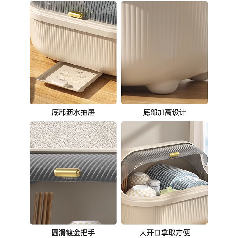 品喻(PINYU)【大号】碗筷收纳盒碗柜沥水碗架带盖碗筷餐具收纳盒碗碟架奶咖色价格:69.90元!