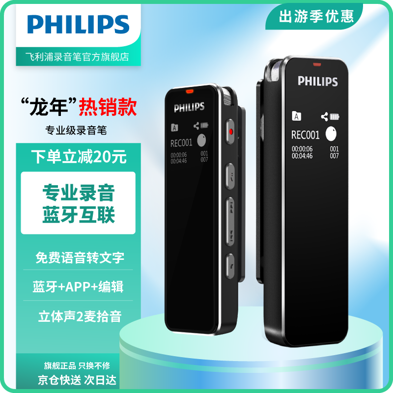 飞利浦(PHILIPS)VTR5102 32G 会议录音笔 语音转文本 智能APP 声纹感应 录写同步价格:399.00元!