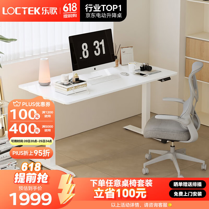 乐歌电动升降桌电脑桌双电机站立办公家用写字书桌 E3/1.4m雅白色套装价格:1999.00元!