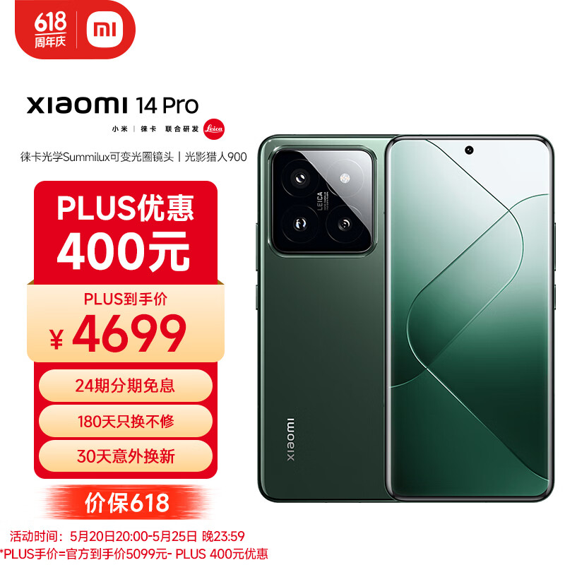 小米14Pro 徕卡可变光圈镜头 光影猎人900 澎湃OS 16+512 岩石青 5G AI手机 小米汽车互联价格:5099.00元!