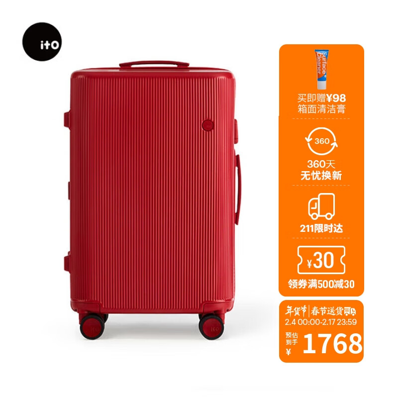ITO行李箱PISTACHIO LUCKY CASE拉杆箱旅行箱开运红28英寸价格:1798.00元!
