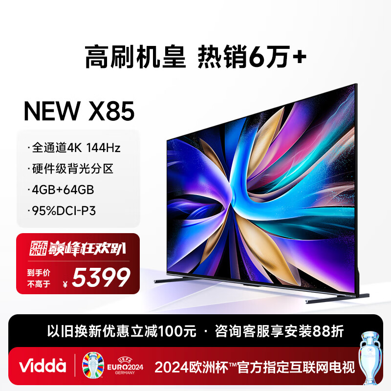 Vidda NEW X85 海信电视 85英寸 144Hz 背光分区 4+64G 金属屏 游戏液晶巨幕电视以旧换新85V3K-X价格:5799.00元!