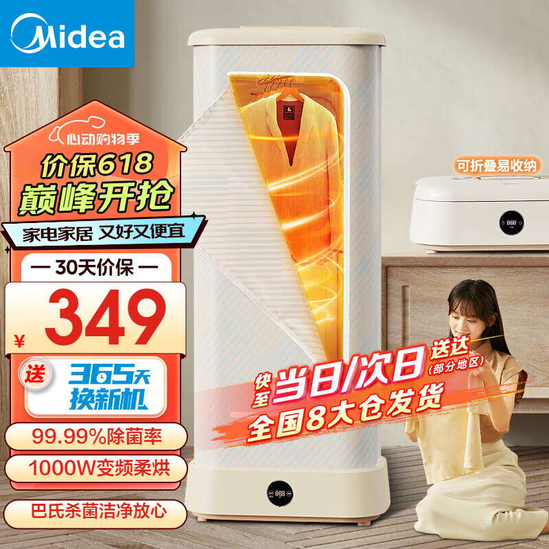 美的(Midea)可折叠干衣机烘干机家用折叠收纳便携小型风干机变频暖风布罩类婴儿烘干机烘干内衣便携烘干机 【巴氏+高温除菌】HBGD10D1价格:499.00元!